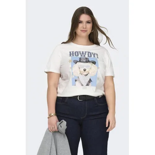 Voor je dagelijkse outfits is dit ONLY CARMAKOMA dames T-shirt een praktische basis. Het witte shirt uit de 'Carpenelope Life' lijn heeft een ronde hals en korte, rechte mouwen. De zachte katoenkwaliteit voelt zacht aan op de huid en is geschikt voor ieder seizoen, van een frisse lentedag tot een relaxte thuisdag. Dit model is speciaal ontworpen voor het grote maten assortiment en sluit aan zonder strak te zitten.Details die je elke dag draagt Gemaakt van 100% katoen, dat soepel aanvoelt en prettig ademt Ronde hals die goed combineert met vesten, blazers of een open overhemd Korte, rechte mouwen voor een rustige uitstraling Printopdruk aan de voorkant als grafisch detail Normale pasvorm, volgens maatadvies: valt zoals je gebruikelijk draagt Onderdeel van de 'Daily' collectie, geschikt voor alledaags gebruik Eenvoudig in onderhoud, wasbaar op 30 graden en warm strijkbaar Niet geschikt voor de droogtrommel, zo blijft de vorm langer mooiEen basic voor talloze combinatiesDraag dit T-shirt op een jeans met sneakers voor een casual dag, of combineer het onder een blazer voor een meer geklede look. Door de neutrale witte kleur laat het zich combineren met verschillende stijlen en prints in je kast.ONLY CARMAKOMA: mode in grote matenONLY CARMAKOMA ontwikkelt mode in grote maten met actuele pasvormen. Met aandacht voor pasvorm, comfortabele materialen en draagbare designs biedt het merk items die praktisch zijn in het dagelijks gebruik en aansluiten op de trends.Een praktische basic die goed aansluit bij je dagelijkse garderobe.