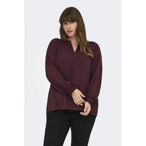 Deze ONLY CARMAKOMA top heeft een V-hals en lange ballonmouwen. Gemaakt van 100% polyester, voelt stevig aan en biedt een regular fit. De geweven stof geeft een nette uitstraling aan je outfit.