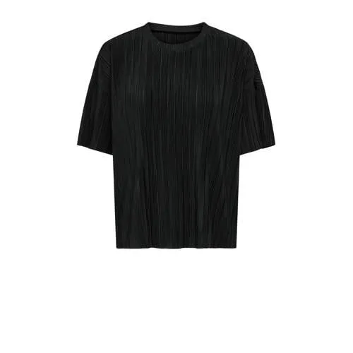Deze ONLY CARMAKOMA CARRAVENNA S/S PLISSE TOP heeft een rechtvallende pasvorm en korte rechte mouwen. De top is gemaakt van 100% polyester, heeft een ronde hals en een lichte plissé structuur.