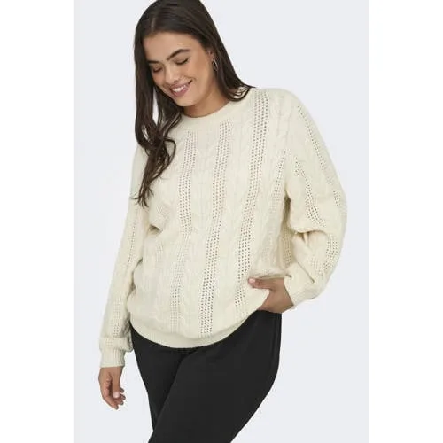 Deze trui van ONLY CARMAKOMA heeft rechte mouwen en een ronde hals. Het is een gebreide trui met ingebreid patroon en kabels, gemaakt van viscose. Je draagt deze trui makkelijk bij verschillende outfits.
