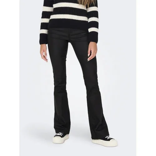 ONLY coated flared broek ONLBLUSH zwart