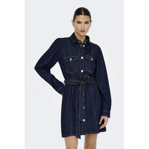 Deze ONLY jurk heeft lange mouwen en is gemaakt van denim. De jurk heeft een klassieke kraag en een knoopsluiting. Met ceintuur, riemlussen en borstzakken draag je dit model op verschillende manieren.