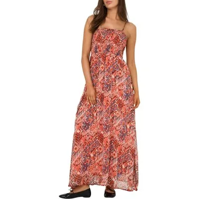 Specificaties: * Pasvorm: volume fit * Mouwlengte: mouwloos * Details: gesmokt detail * Kleur: oranje - paars * Materiaal: 51% gerecycled polyester – 49% polyester