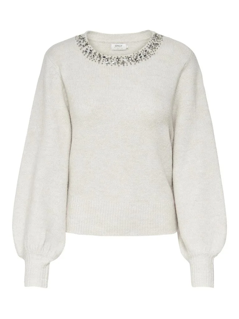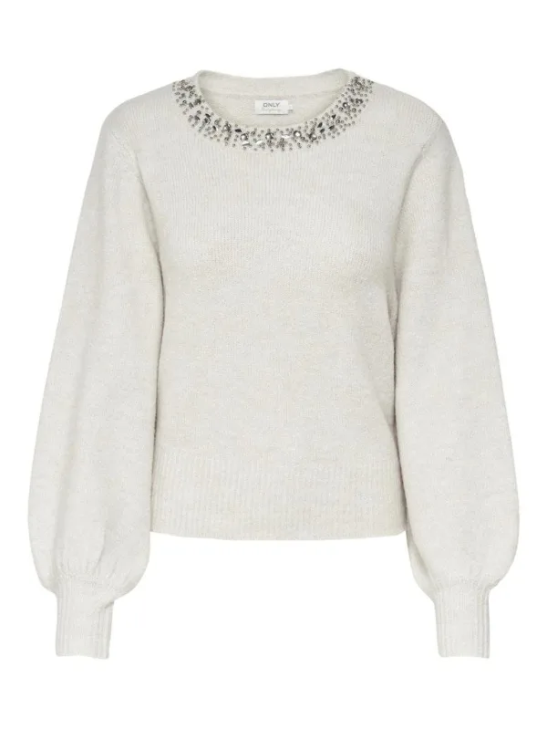 Vul je look aan met een tijdloze vrouwelijke trui en voeg zachtheid en warmte toe. - Soort detail: Gebreide trui - Kraag: Ronde hals - Mouwen: Lange mouwen (L/S) - Manchetten: Hoge manchetten - Extra details: Steentjes - Pasvorm: Regular fit