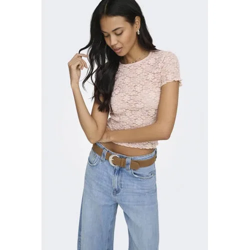 Deze lichtroze lichtroze top met kant voor dames van ONLY geeft je outfit meteen een frisse en vrouwelijke uitstraling. De subtiele bloemenstructuur en de ronde hals zorgen voor een rustige look, terwijl de korte rechte mouwen het geheel luchtig houden. Dankzij het soepele materiaal met 3% elastaan sluit de top mooi aan zonder strak te voelen, ideaal voor dagelijkse combinaties tijdens het voorjaar.Details die het verschil maken Lichtroze kleur die makkelijk te combineren is met jeans, rok of pantalon Korte rechte mouwen voor een luchtig en comfortabel gevoel Ronde hals die mooi rondom de halslijn valt Bloemenstructuur die de top een verfijnde en vrouwelijke uitstraling geeft Met 3% elastaan voor een lichte stretch en een fijne pasvorm Maatadvies: dit artikel valt normaal Wasbaar op 30 graden, lauw strijkbaar (1 punt) en niet in de droogtrommel drogenGeschikt voor al je dagelijkse looksDeze top komt uit de 'Daily' collectie en is daardoor geschikt voor allerlei momenten. Draag de top op een lichte jeans voor een ontspannen dag, of combineer met een nette broek voor een verzorgde look naar kantoor. Door de rustige kleur is de top ook goed te combineren met een vest of blazer.ONLY als betrouwbare stijlpartnerONLY staat bekend om modieuze kleding die goed past in het dagelijks leven. Met aandacht voor pasvorm en actuele trends maakt het merk het eenvoudig om outfits samen te stellen waar je je de hele dag prettig in voelt.Een lichte, vrouwelijke basis voor je garderobe waar je vaak naar zult grijpen.