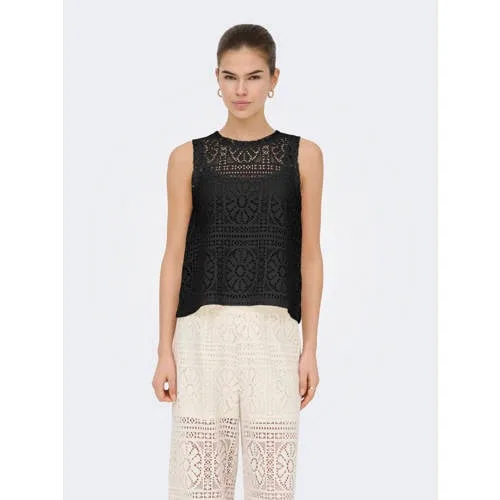 Voor een lichte, vrouwelijke laag in je garderobe is deze mouwloze zwarte top van ONLY een praktische basic voor elke dag. De top heeft een ronde hals en is afgewerkt met broderie details en een all over bloemenprint, waardoor je outfit meer detail krijgt. Dankzij de normale pasvorm valt de top soepel langs je lichaam en voelt de stof zacht aan op de huid.Details die het verschil maken Mouwloos model, ideaal voor warme dagen of onder een vest of blazer Ronde hals voor een tijdloze en makkelijk te combineren look Broderie details en bloemenprint voor een vrouwelijke look met aandacht voor detail Katoen in de stof zorgt voor een zachte, soepele touch Valt normaal, waardoor je gewoon je gebruikelijke maat kunt kiezen Wasbaar op 30 graden en lauw strijkbaar (1 punt) voor eenvoudig onderhoud Niet geschikt voor de droogtrommel, zo blijft de top langer mooiElke dag combinerenDeze top komt uit de Daily collectie en past goed bij je dagelijkse outfits. Draag de zwarte top op een jeans voor een casual look of combineer met een pantalon voor een meer aangeklede stijl. In de lente ook mooi onder een licht jasje.ONLY als basis van je kledingkastONLY ontwerpt moderne, draagbare mode voor het dagelijks leven. Met aandacht voor pasvorm en trends biedt het merk items die je makkelijk kunt combineren.Een top die je het hele seizoen door eenvoudig kunt stylen.
