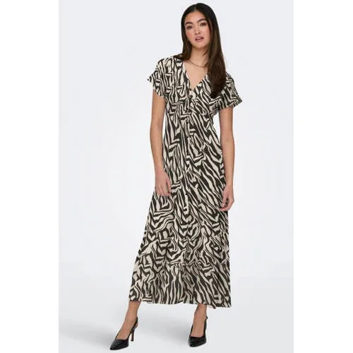 Breng een frisse, zomerse sfeer in je garderobe met deze ONLY ONLNOVA jurk. De lange jurk is licht en luchtig, met een all over bloemenprint die direct opvalt. Door de V-hals en knoopsluiting aan de voorkant krijgt het ontwerp een open uitstraling, terwijl de korte mouwen prettig zijn op warmere dagen.Lange bloemenjurk voor zonnige dagen Lange zomerjurk met all over bloemenprint Gemaakt van geweven viscose die soepel langs het lichaam valt V-hals met knoopsluiting aan de voorkant voor een open, luchtige look Korte mouwen, prettig in het voorjaar en de zomer Zonder zakken voor een rustige belijning Maatadvies: dit artikel valt normaalGeschikt voor warme dagen en lichte lagenDeze lange zomerjurk past bij veel momenten. De jurk is comfortabel op warme dagen en kan in combinatie met een extra laag ook tijdens frissere avonden worden gedragen. De luchtige stof en de lange lengte maken de jurk geschikt voor zowel een casual werkdag als een ontspannen dagje weg.ONLY: eigentijdse mode voor elke dagONLY staat bekend om modieuze items met een toegankelijke uitstraling. De collecties sluiten aan op de laatste trends en zijn gemaakt voor dagelijks gebruik. Met deze ONLNOVA jurk haal je een kledingstuk in huis dat makkelijk te combineren is met de rest van je kledingkast.Een lange, bloemrijke zomerjurk die je tijdens het hele seizoen kunt dragen.