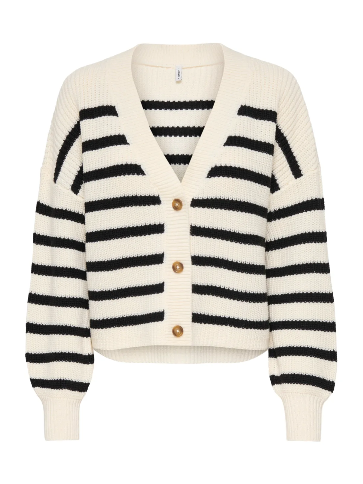 Design: Geribbelde kraag, Geribd ceintuurtje, Overcut schouder; Type sluiting: Knoopsluiting; Materiaal: Knitwear; Halstype: V-hals; Motief: Gestreept; Extra's: All-over patroon, Met textuur; Pasvorm: Losse pasvorm; Armlengte: Lange mouw; Lengte: Normale lengte