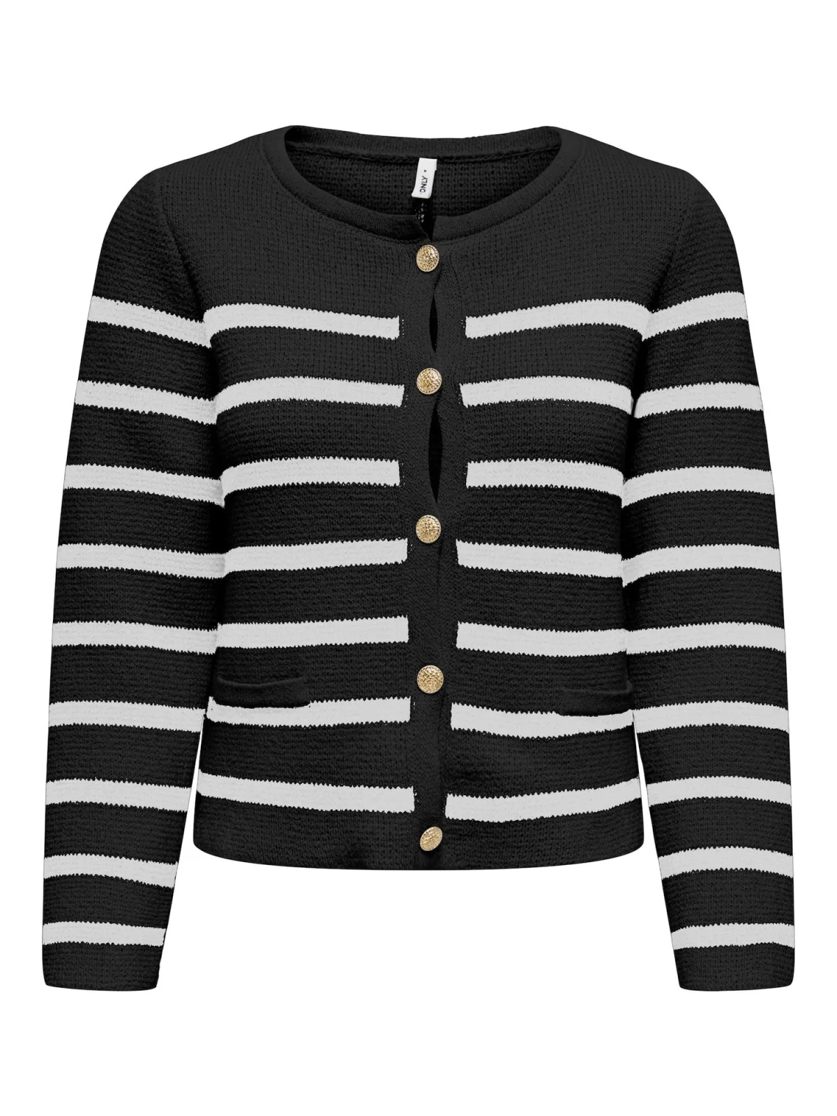ONLY Gebreid vest ‘ONLLaura’ zwart / offwhite Prijzen