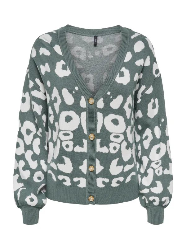 Design: Knop placket, Geribd ceintuurtje, Overcut schouder; Type sluiting: Knoopsluiting; Materiaal: Knitwear; Halstype: V-hals; Motief: Dierenprint; Extra's: All-over patroon, Fully fashioned, Voelt zacht aan; Pasvorm: Normale pasvorm; Armlengte: Lange mouw; Lengte: Normale lengte