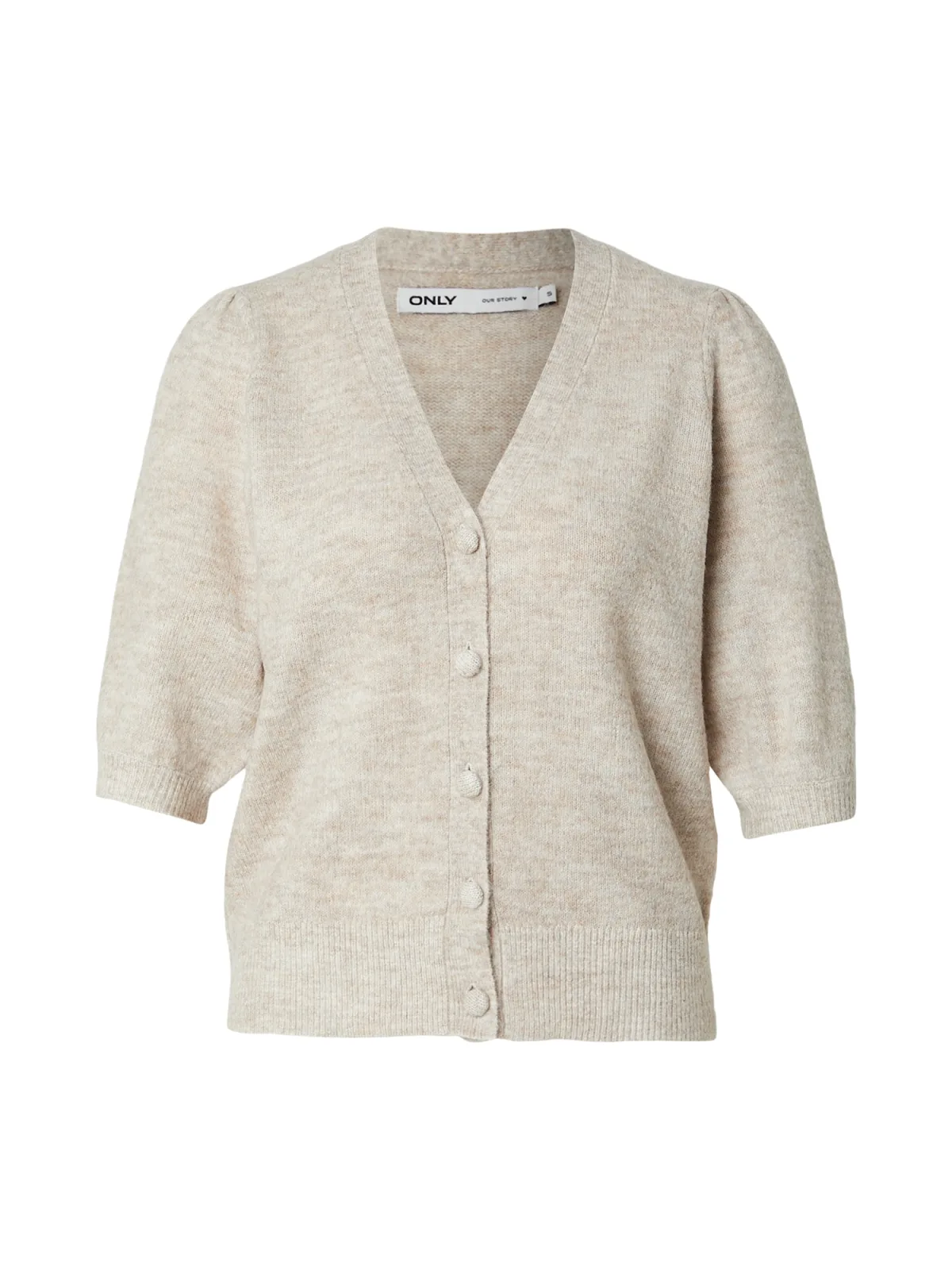 Design: Knop placket, Geribd ceintuurtje; Type sluiting: Knoopsluiting; Materiaal: Knitwear; Halstype: V-hals; Motief: Mélange; Extra’s: Fully fashioned, Voelt zacht aan; Pasvorm: Normale pasvorm; Armlengte: Halve mouw; Lengte: Normale lengte