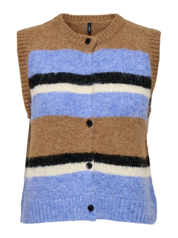 ONLY Gebreide bodywarmer ‘ONLKALLIE’ lichtblauw / karamel / zwart / wit