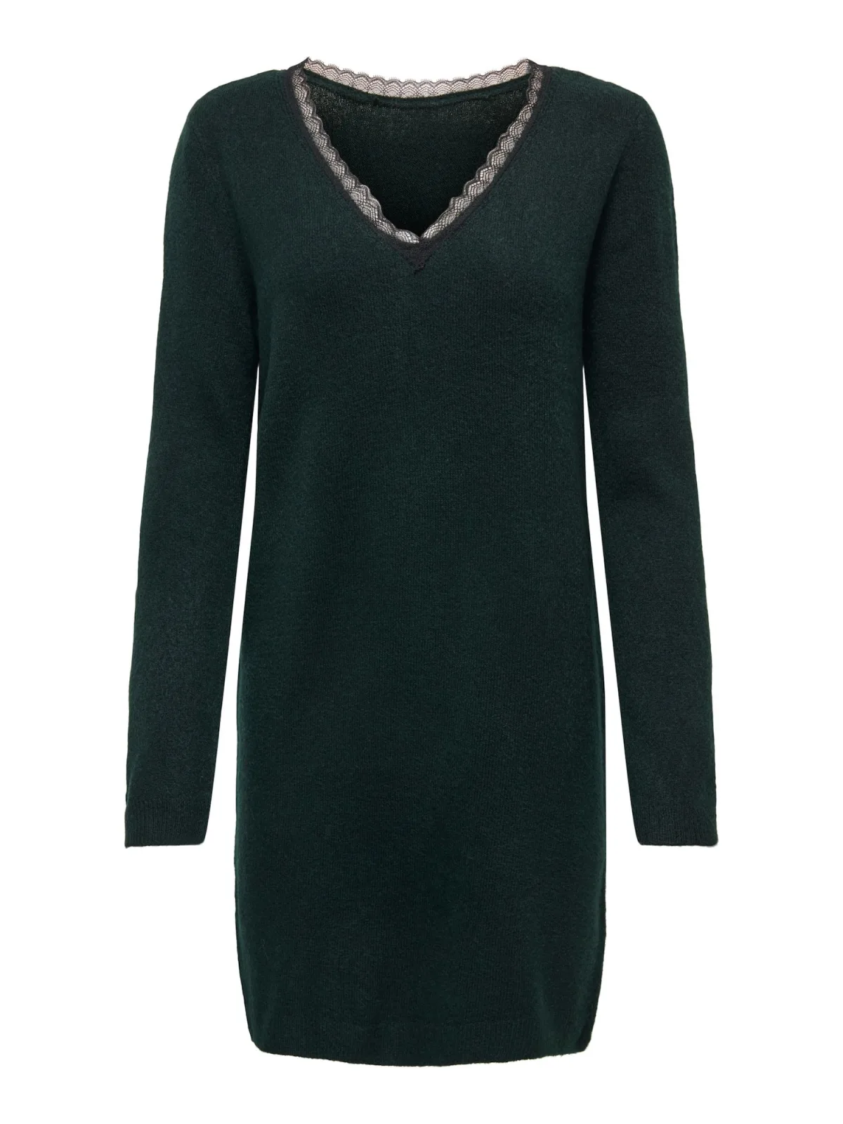 Design: Gevoerde zoom/rand; Materiaal: Knitwear; Halstype: V-hals; Motief: Effen; Details: Kant; Extra's: Op staal naden; Lengte: Knielengte; Snit: Recht; Pasvorm: Losse pasvorm; Armlengte: Lange mouw