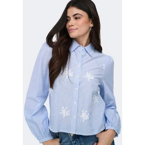 Voor een frisse, dagelijkse look is deze katoenen dames blouse van ONLY een fijne basis in je garderobe. De blauw / ecru strepen geven een tijdloze uitstraling die zowel netjes als casual kan. Gemaakt van 100% katoen voelt de blouse luchtig en zacht aan, prettig voor werkdagen, thuis of onderweg. De klassieke kraag en lange mouwen met rechte snit zorgen voor een rustige, verzorgde stijl die makkelijk te combineren is.Gestreept design met subtiele details Gemaakt van 100% katoen, voelt zacht aan en is prettig om de hele dag te dragen Blauw / ecru streeppatroon voor een rustige, tijdloze uitstraling Klassieke kraag en knoopsluiting voor een nette, veelzijdige look Lange rechte mouwen, geschikt voor wisselende temperaturen in de lente Borduursels als subtiel detail voor extra uitstraling Geen borstzakken, waardoor het geheel rustig en strak oogt Dit artikel valt normaal volgens het maatadvies Wasbaar op 30 graden en warm strijkbaar (2 punten), niet drogen in de droogtrommelVoor elke dag in jouw garderobeDeze blouse uit de 'Daily' collectie past goed in je dagelijkse outfits. Draag de gestreepte blouse op een jeans voor een ontspannen dag, of combineer met een nette broek voor op kantoor. Op koudere dagen kan er makkelijk een vest of trui overheen.ONLY: eigentijdse mode voor elke dagONLY staat bekend om modieuze kleding die goed past in het dagelijkse leven. Met toegankelijke stijlen, actuele kleuren en comfortabele pasvormen biedt ONLY items die je keer op keer uit de kast pakt.Een veelzijdige blouse die je eenvoudig aanpast aan je dag en je planning.