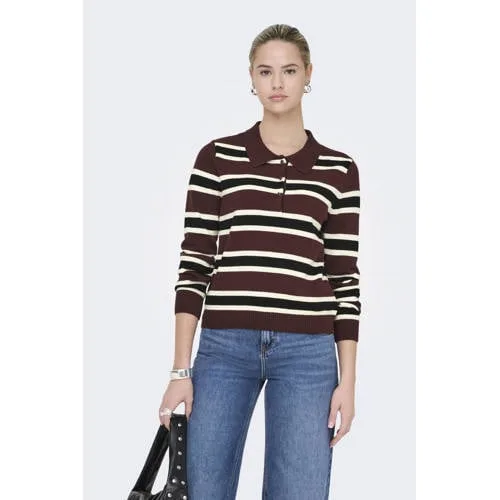 ONLY gestreepte trui donkerrood gebreid Prijzen