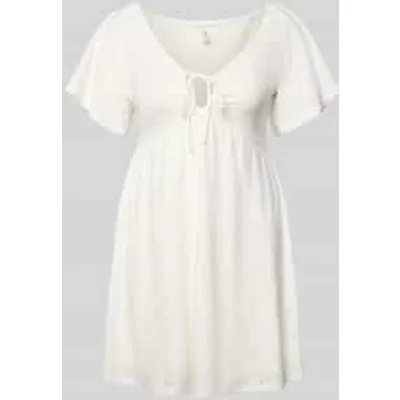 Dames vrijetijdsjurk van Only;Model 'Smilla';Look: etskanteffect;pasvorm: getailleerd;Lengte: mini;hals: V-hals;sluiting: vetersluiting;mouwvorm: korte mouw;Zoom: recht