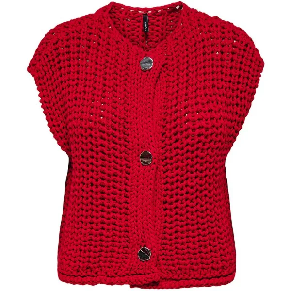 Deze prachtig gebreide gilet van het merk Only is een must-have voor dit seizoen! De opvallende rode kleur geeft elke outfit een stijlvolle touch. Gemaakt van 100% acryl, is deze gilet niet alleen modieus maar ook comfortabel om te dragen.en#10;en#10;De gebreide stof zorgt voor een mooie textuur en geeft de gilet een luxe uitstraling. Het mouwloze ontwerp maakt het perfect voor zowel casual als formele gelegenheden. Draag het over een simpel wit t-shirt voor een relaxte look of combineer het met een blouse voor een chique kantoor outfit.en#10;en#10;Het tijdloze ontwerp van deze gilet maakt het een veelzijdig kledingstuk dat jarenlang mee zal gaan. Het is gemakkelijk te combineren met verschillende items in je kledingkast. Dankzij de goede kwaliteit van het materiaal en de afwerking, blijft het er altijd als nieuw uitzien.en#10;en#10;Voeg deze rode gebreide gilet van Only toe aan je garderobe en geef elke outfit een trendy twist. Bestel nu en geniet van zowel de stijl als het comfort van deze must-have!