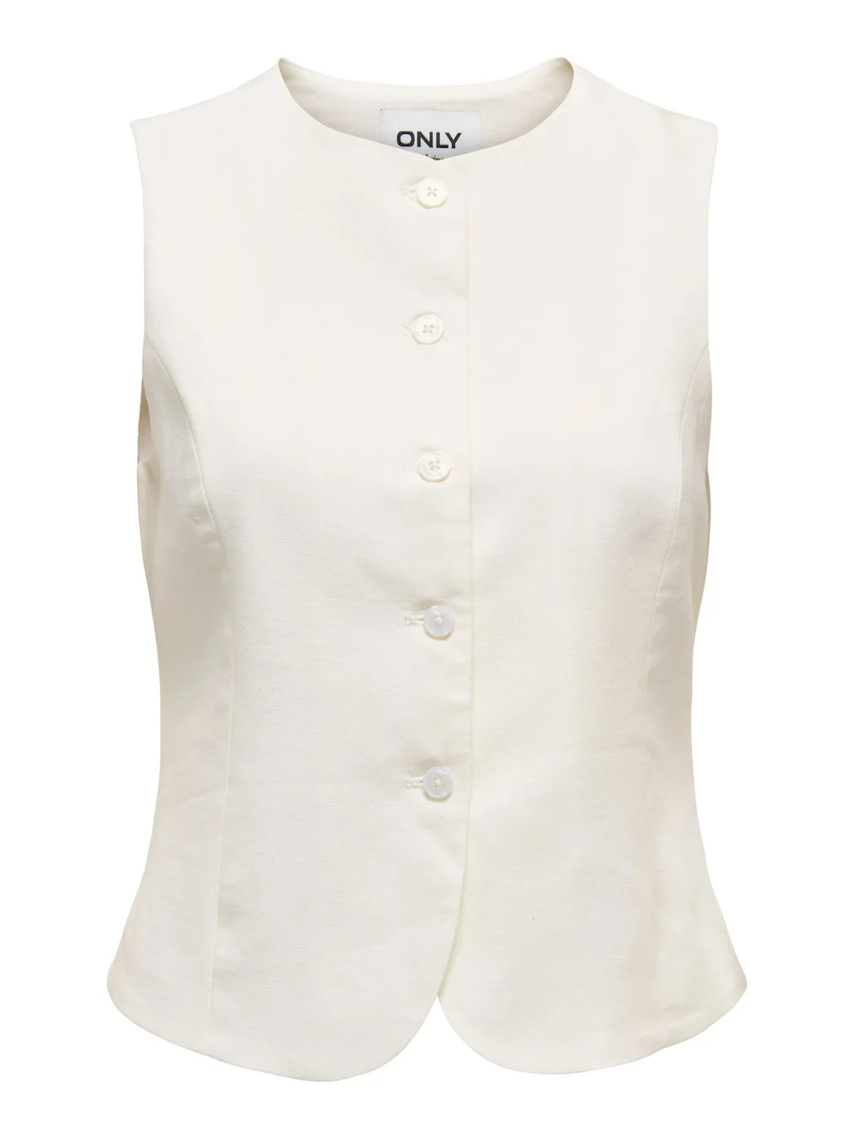 Dames bodywarmer van Only;Model 'Goa';look: effen;Pasvorm: regular fit;kraagmodel: maokraag;Sluiting: enkelrijige knoopsluiting;rompzoom: afgerond;materiaalverwerking: gevlamd garen;Materiaal: mix van viscose en linnen