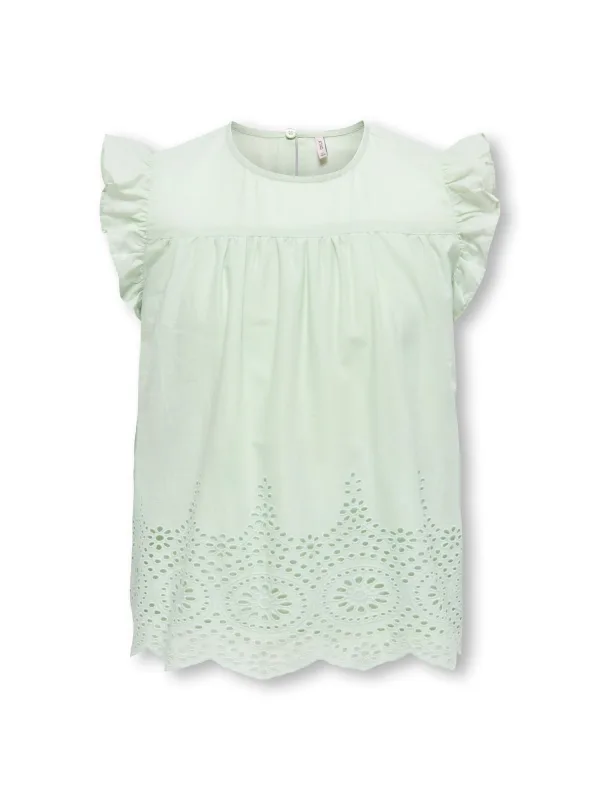 Materiaal: Katoen; Motief: Effen; Kraag: Zonder kraag; Details: Ruches, Borduursels, Mesh; Pasvorm: Losse pasvorm; Armlengte: Kwartmouw; Lengte: Normale lengte