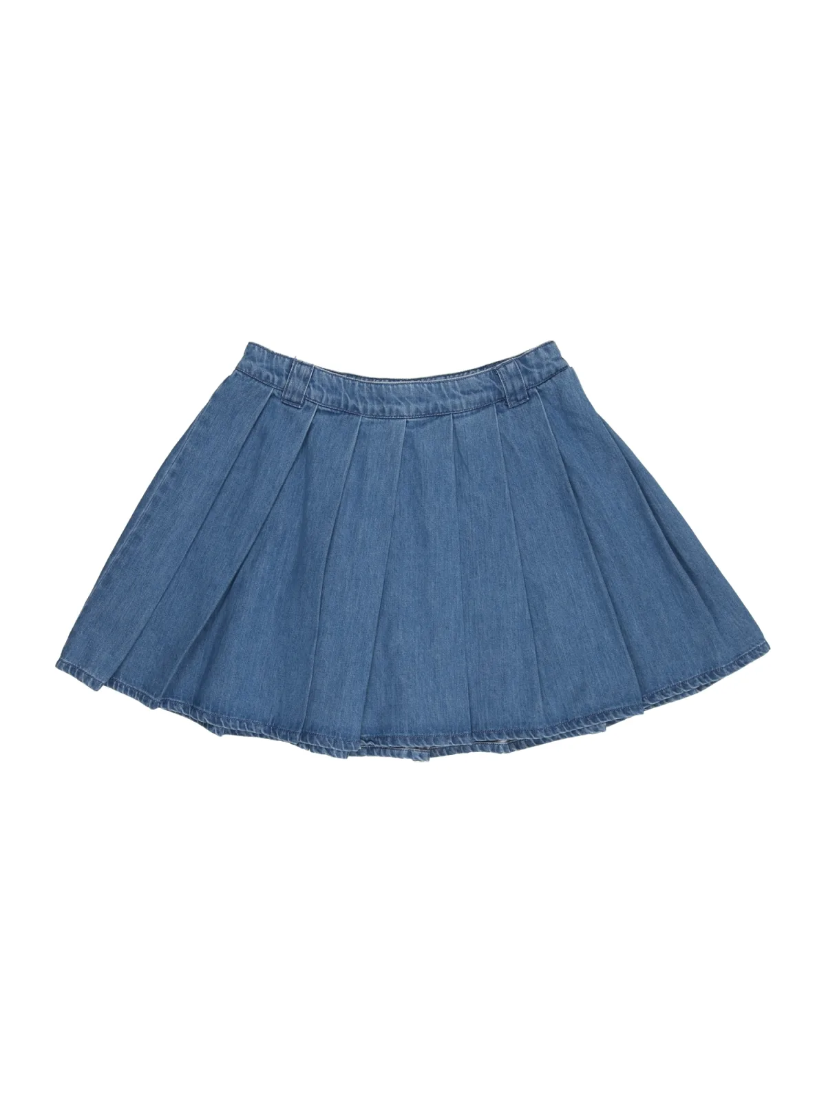 Design: Gevoerde zoom/rand, Ritszakken aan de zijkant; Type sluiting: Ritssluiting; Materiaal: Denim; Motief: Effen; Rokvorm: Plooirok; Details: Plooien; Extra's: Gewassen effect, Riemlussen; Lengte: Kort/mini