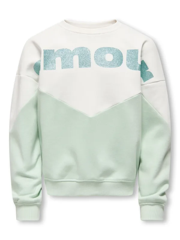 ONLY GIRLS Sweatshirt ‘KOGRuna-Mena’ turquoise / mintgroen / offwhite