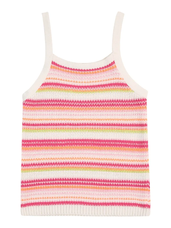 Design: Rechte zoom, Geribd ceintuurtje; Materiaal: Knitwear; Halstype: Ronde hals; Motief: Gestreept; Soort bandjes: Normale bandjes; Extra’s: All-over patroon, Fully fashioned, Voelt zacht aan; Pasvorm: Normale pasvorm; Armlengte: Mouwloos; Lengte: Normale lengte