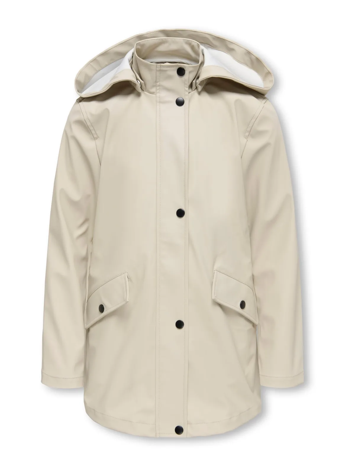Design: Afneembare capuchon, Staande kraag, Opzet-/flapzak; Type sluiting: Drukknoop; Type jas: Regenjas; Voering: Licht gevoerd; Materiaal: Gerecycled materiaal; Motief: Effen; Extra's: Op staal naden, Gladde stof; Pasvorm: Normale pasvorm