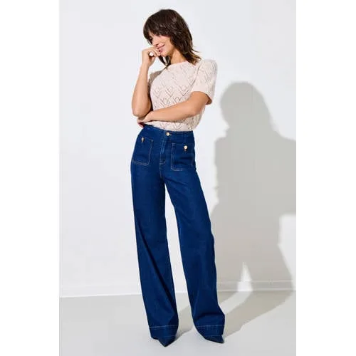ONLY high waist wide leg jeans dark blue denim Prijzen