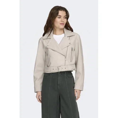 ONLY imitatieleren bikerjack ecru