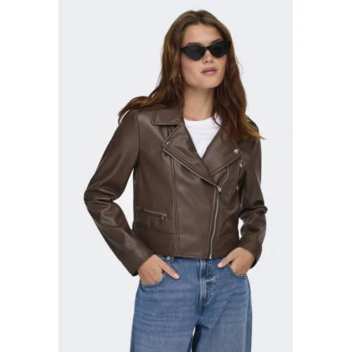 ONLY imitatieleren jas donkerbruin Prijzen