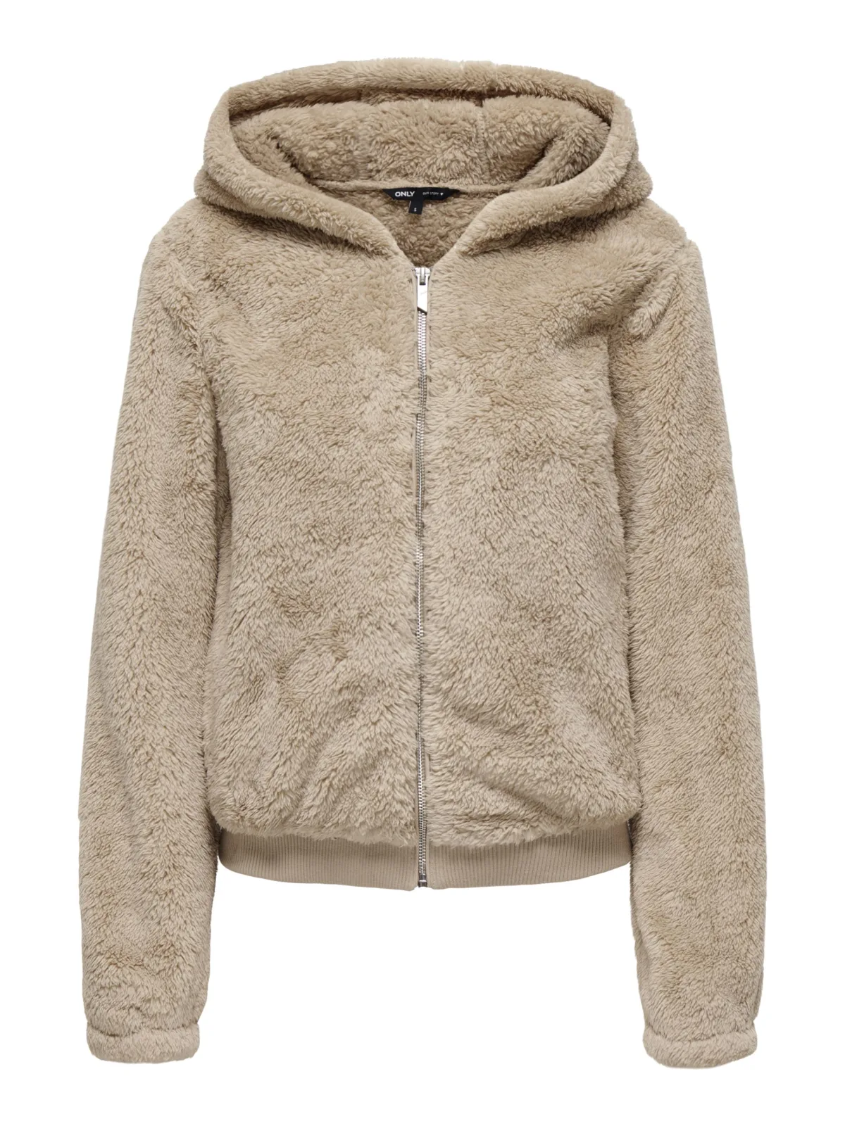 Herzie je garderobe opnieuw met kledingstukken die je look perfectioneren, perfect voor alle seizoenen en gelegenheden. - Type artikel: Fleecejas - Kraag: Capuchon - Mouwen: Lange mouwen - Sluiting: Ritssluiting - Lengte/Maat: Kort - Voering: Polyester voering voor een comfortabel gevoel - Details: FluffdetailMateriaal: 100% Polyester; Voering: 100% Polyester Maximale temperatuur 30°C normaal programma Niet bleken Strijken op een maximale temperatuur van 110°C. Stomen kan onherstelbare schade veroorzaken. Trommeldrogen mogelijk Drogen op lage temperatuur Niet chemisch reinigen Wassen met soortgelijke kleuren Wassen met soortgelijke kleuren