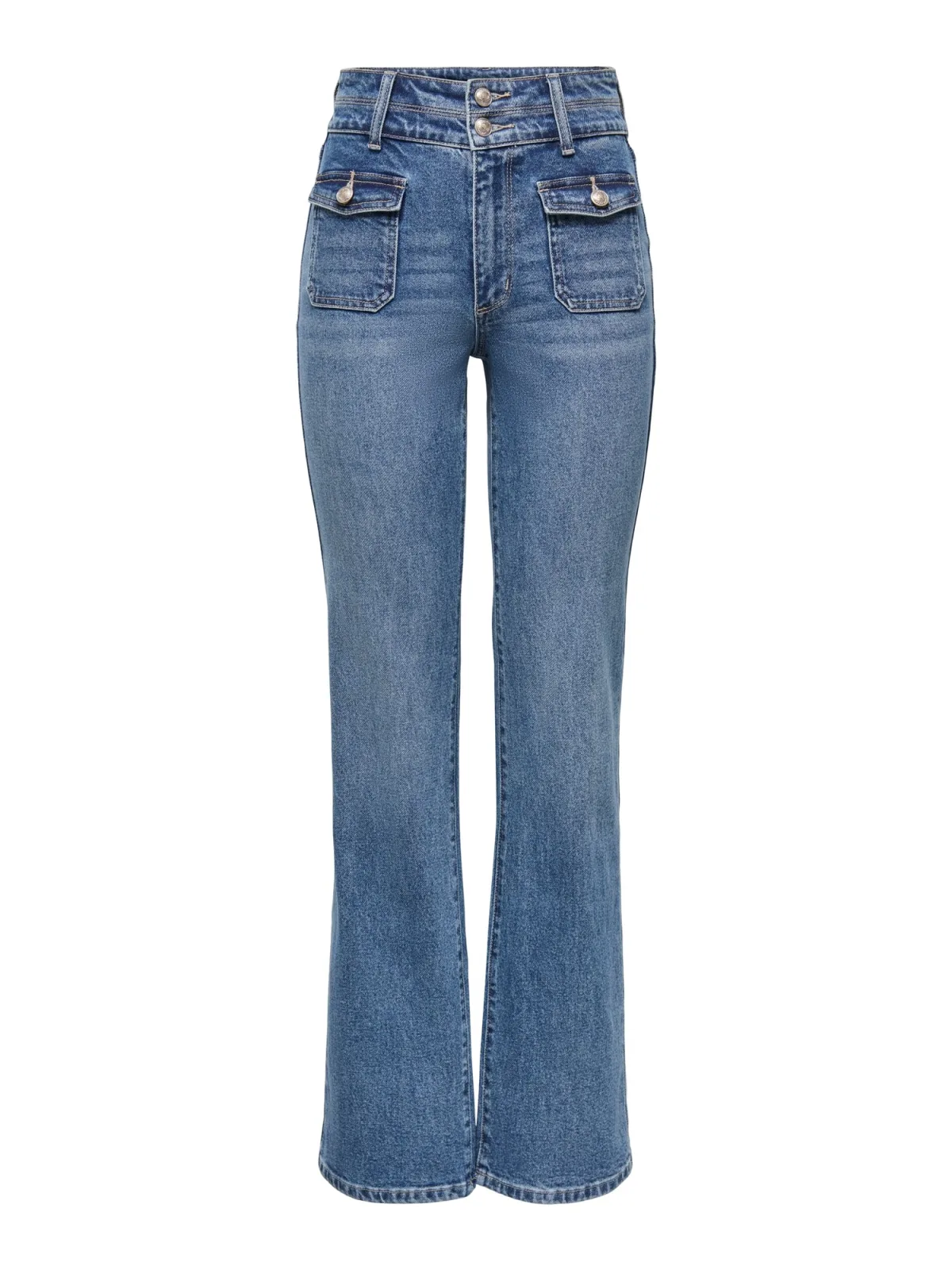 Design: Ritssluiting, Opgezette zakken; Type sluiting: Ritssluiting; Materiaal: Denim; Motief: Effen; Extra's: Gewassen effect, Riemlussen; Wassing: Heavy washed; Lengte: Lang/maxi; Pasvorm: Flared; Taillehoogte: High waist