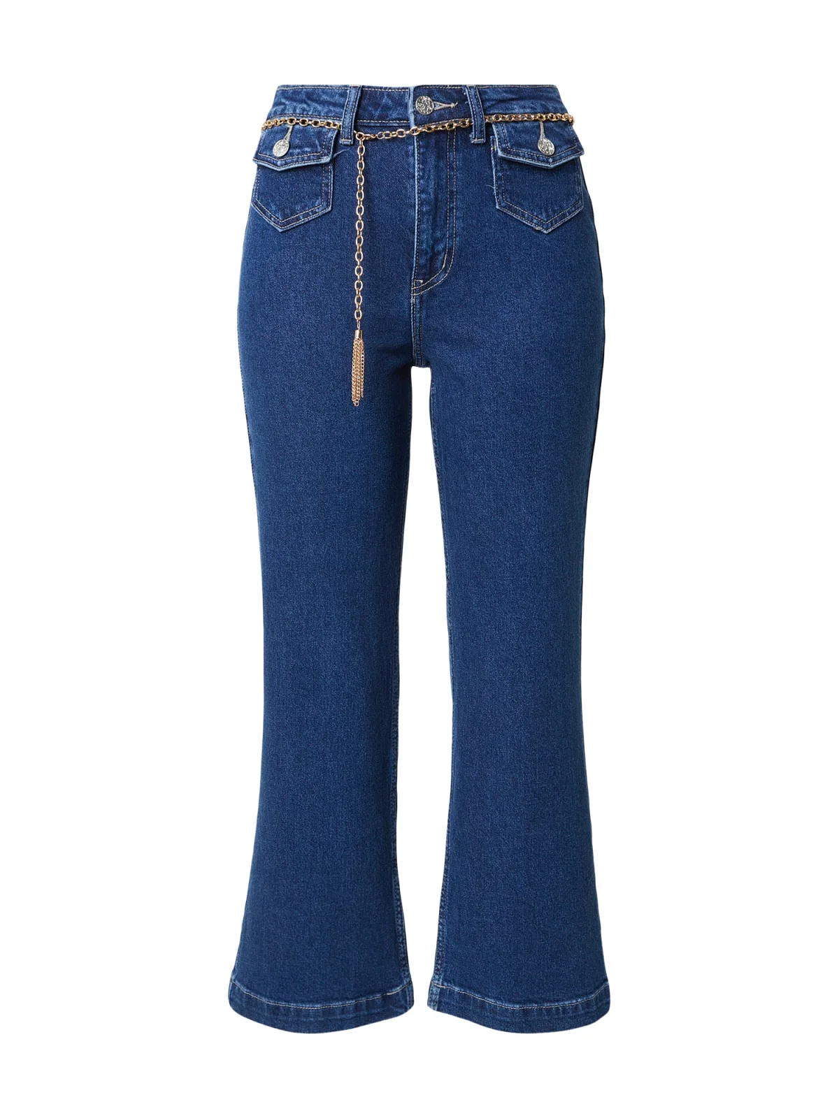 Design: Ritssluiting, Opgezette zakken, Achterzak; Type sluiting: Ritssluiting; Materiaal: Denim; Motief: Effen; Extra's: Gewassen effect, Vaste grip, Riemlussen; Wassing: Blauw denim; Lengte: 7/8 lengte; Pasvorm: Flared; Taillehoogte: High waist