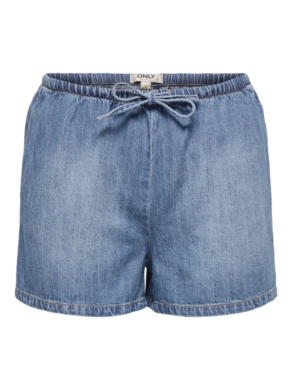 Design: Gevoerde zoom/rand, Taille met trekkoord, Zakken aan de zijkant; Materiaal: Denim; Motief: Effen; Details: Gedrapeerd; Extra's: Gewassen effect, Stevige stof; Wassing: Heavy washed; Lengte: Kort/mini; Pasvorm: Regular; Taillehoogte: Low waist