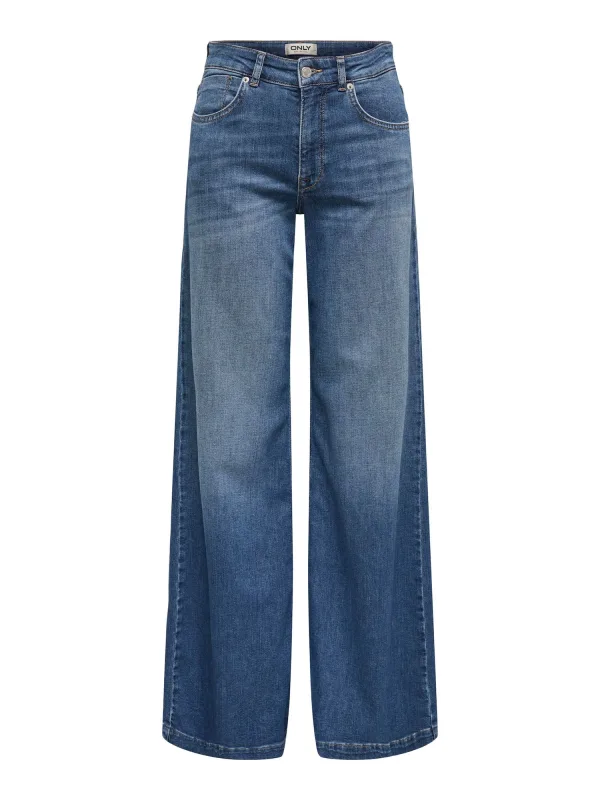 Design: Gevoerde zoom/rand, Knop placket, Verborgen rits, 5-pocket-style; Type sluiting: Ritssluiting; Materiaal: Denim; Motief: Effen; Extra's: Label patch/label flag; Wassing: Heavy washed; Lengte: Lang/maxi; Pasvorm: Wide leg; Taillehoogte: Mid waist