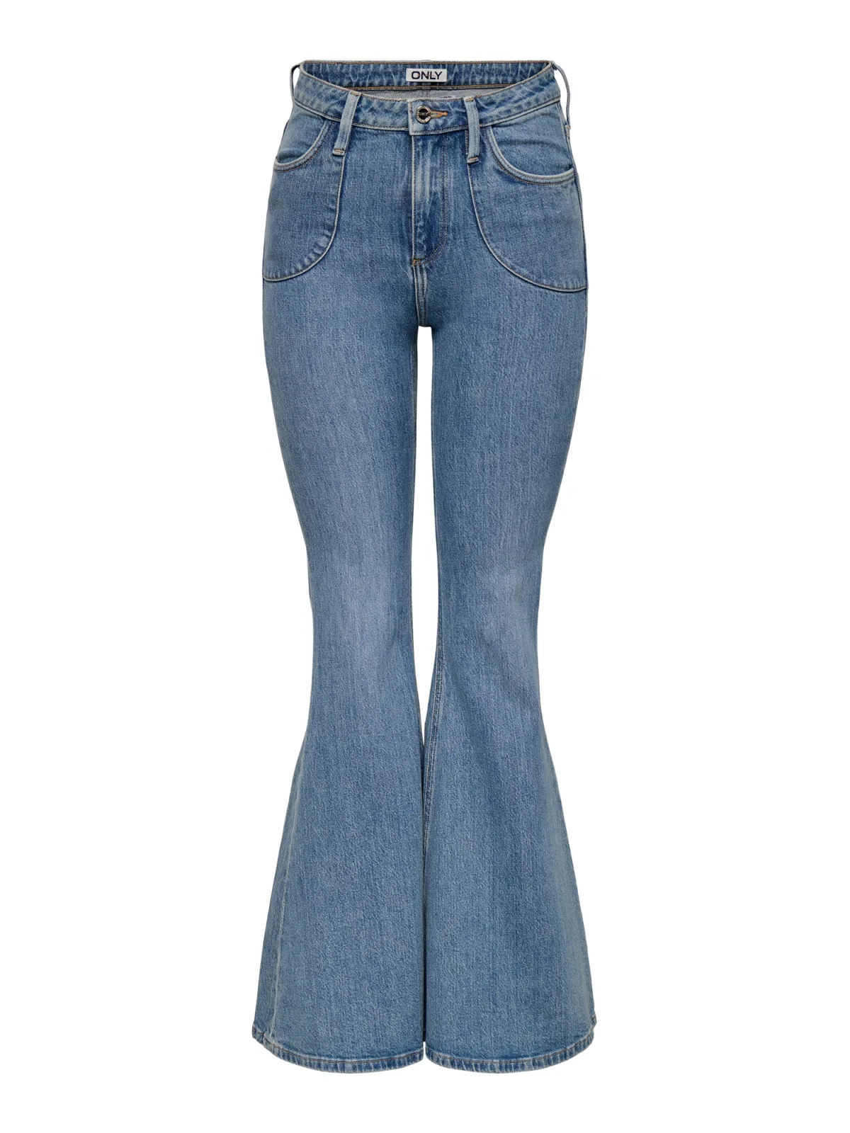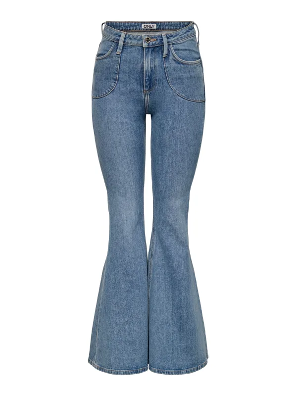 Design: Ritssluiting, Achterzak; Type sluiting: Ritssluiting; Materiaal: Denim; Motief: Effen; Extra's: Gewassen effect, Stevige stof, Riemlussen; Wassing: Blauw denim; Lengte: Lang/maxi; Pasvorm: Flared; Taillehoogte: Mid waist