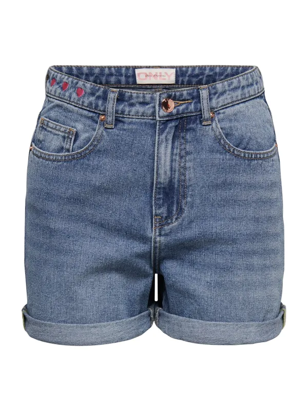 Only Broek Onljean Dnm Fold Up Emb Shorts Mae 15374467...