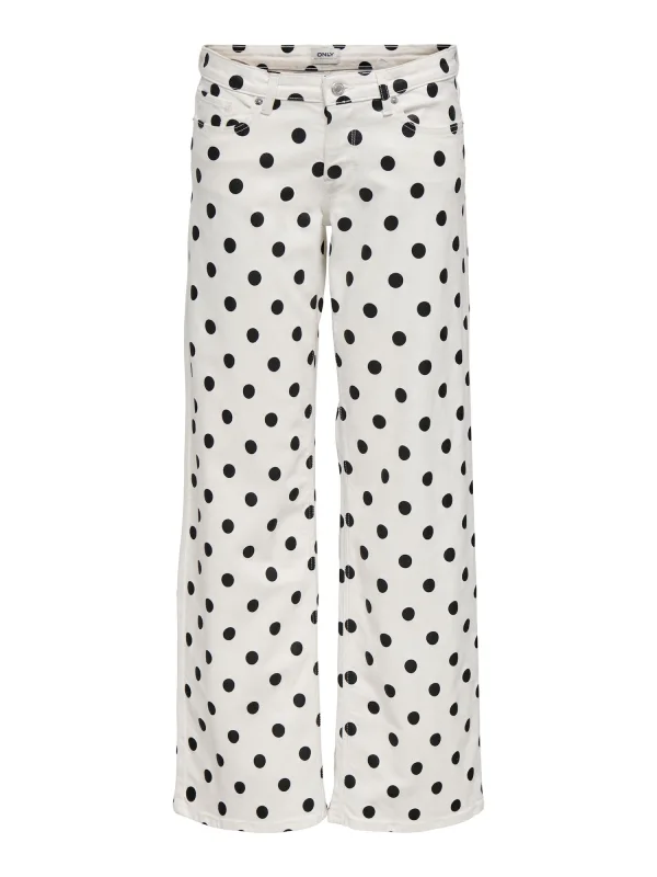 Design: Placket, 5-pocket-style, Zakken aan de zijkant; Materiaal: Denim; Motief: Gestippeld; Extra's: All-over patroon, Riemlussen; Wassing: Raw/unwashed; Lengte: Lang/maxi; Pasvorm: Wide leg; Taillehoogte: Mid waist