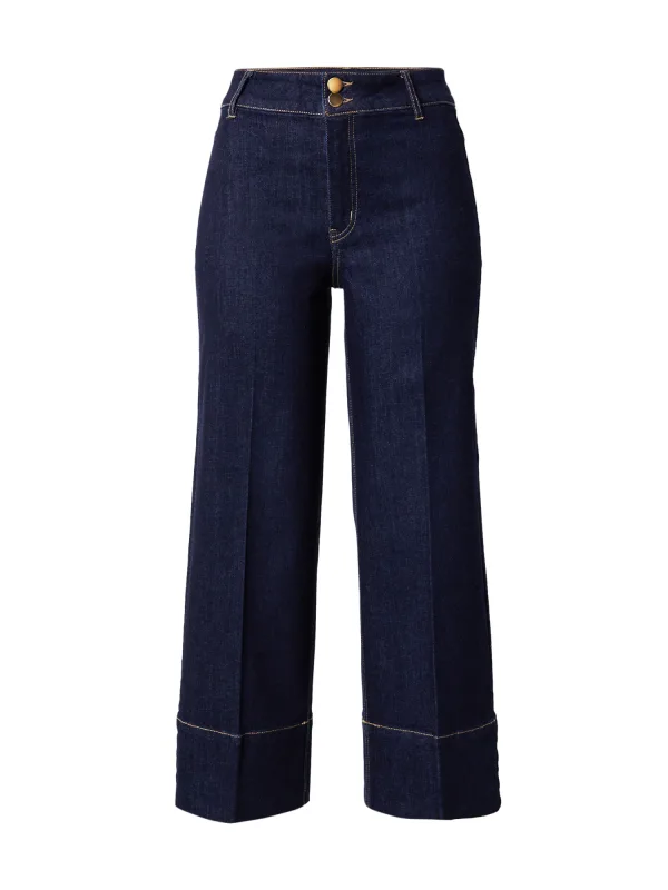 Design: Verborgen rits, Achterzak; Type sluiting: Ritssluiting; Materiaal: Denim; Motief: Effen; Extra's: Contrasterende naden, Riemlussen; Wassing: Raw/unwashed; Lengte: 7/8 lengte; Pasvorm: Wide leg; Taillehoogte: High waist