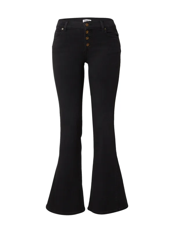 Design: Ritssluiting, 5-pocket-style; Type sluiting: Knoopsluiting; Materiaal: Denim; Motief: Effen; Extra's: Stevige stof, Riemlussen; Wassing: Colored denim; Lengte: 7/8 lengte; Pasvorm: Flared; Taillehoogte: Mid waist