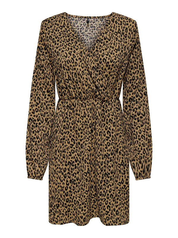 Design: Gevoerde zoom/rand, Elastische taille/zoom, Getailleerd model; Halstype: V-hals; Motief: Dierenprint; Details: Wikkel design; Extra’s: All-over patroon; Lengte: Kort/mini; Pasvorm: Normale pasvorm; Armlengte: Lange mouw