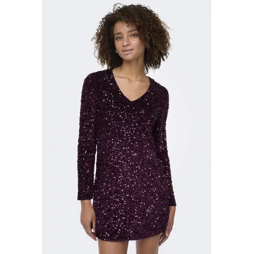 ONLY jurk met pailletten donkerpaars