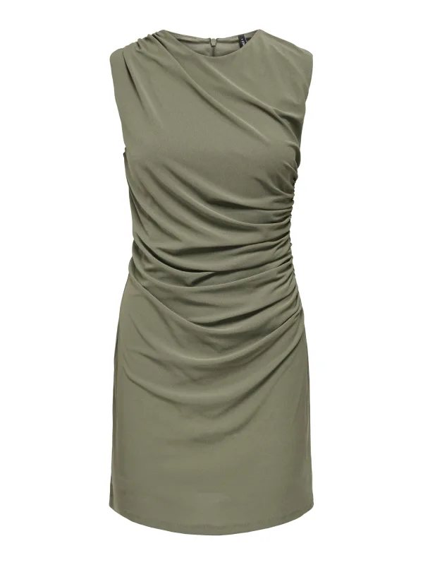 Deze kaki dames jurk van ONLY is een praktische basis voor al je dagelijkse outfits in het voorjaar. De effen kleur maakt het makkelijk te combineren, terwijl de ruches langs de zijkant zorgen voor extra detail. De jurk valt kort en heeft een ronde hals, waardoor het model geschikt is voor zowel casual momenten als een etentje buiten de deur.Details die het verschil maken Kleur: kaki, eenvoudig te combineren met zowel lichte als donkere tinten Model: kort en mouwloos, passend bij het lente seizoen Hals: ronde hals voor een rustige, eenvoudige uitstraling Pasvorm: aangesloten model met ruches langs de zijkant Sluiting: ritssluiting aan de achterkant voor gemakkelijk aan- en uittrekken Stof: soepel materiaal met 5% elastaan voor een lichte stretch Verzorging: wasbaar op 30 graden en lauw strijkbaar (1 punt) Maatadvies: dit artikel valt normaalVoor je dagelijkse looksDeze jurk uit de 'Daily' collectie kun je op veel manieren dragen. Met sandalen of sneakers heb je een ontspannen outfit voor overdag, en met een blazer en laarsjes ontstaat eenvoudig een meer geklede combinatie.ONLY: stijl voor alledagONLY ontwerpt kleding die aansluit bij het dagelijks leven, met collecties die inspelen op trends en tegelijk goed te combineren zijn met je bestaande garderobe. Deze jurk past gemakkelijk in verschillende outfits en is daarmee een bruikbare toevoeging aan je kledingkast.Een eenvoudige jurk die je garderobe praktisch aanvult.