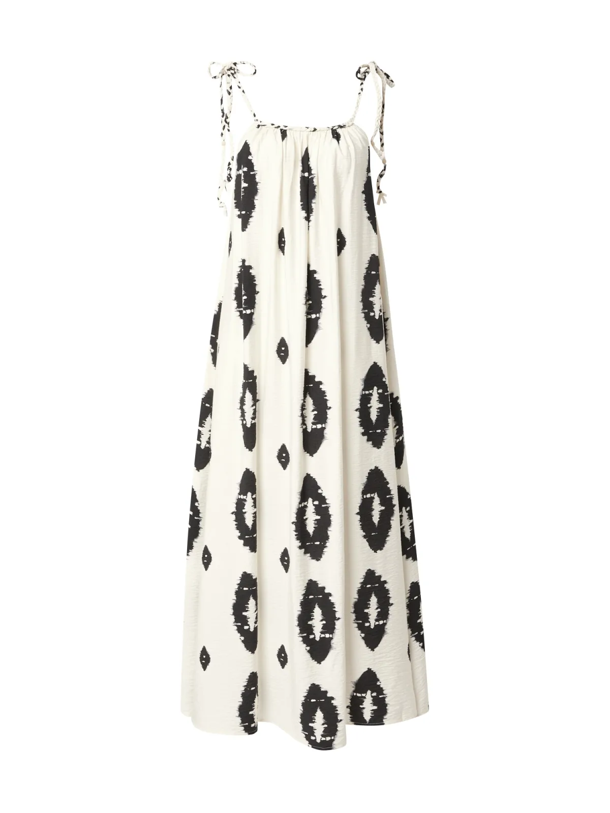 Design: Om te knopen/binden; Materiaal: Viscose; Soort bandjes: Spaghettibandjes; Details: Gedrapeerd; Extra's: All-over patroon; Lengte: Lang/maxi; Snit: Uitlopend; Pasvorm: Normale pasvorm; Armlengte: Mouwloos