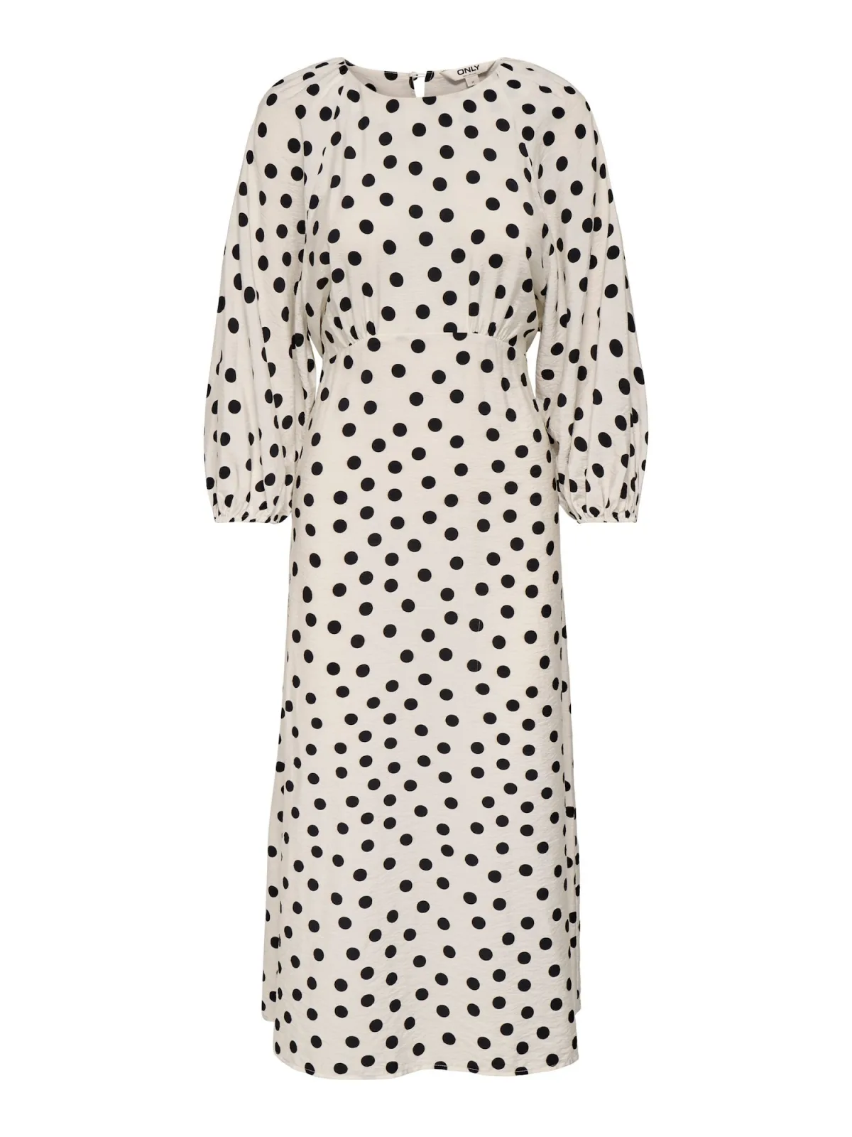 Design: Keyholesluiting, Pofmouwen; Type sluiting: Knoopsluiting; Materiaal: Viscose; Halstype: Ronde hals; Motief: Gestippeld; Details: Cut-outs, Gedrapeerd; Extra’s: All-over patroon; Lengte: Lang/maxi; Snit: Getailleerd; Pasvorm: Normale pasvorm; Armlengte: Lange mouw
