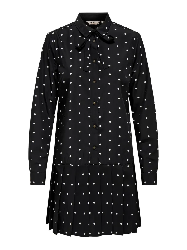 Design: Knop placket; Type sluiting: Knoopsluiting; Motief: Gestippeld; Details: Plissé; Extra’s: All-over patroon; Lengte: Kort/mini; Pasvorm: Normale pasvorm; Armlengte: Lange mouw