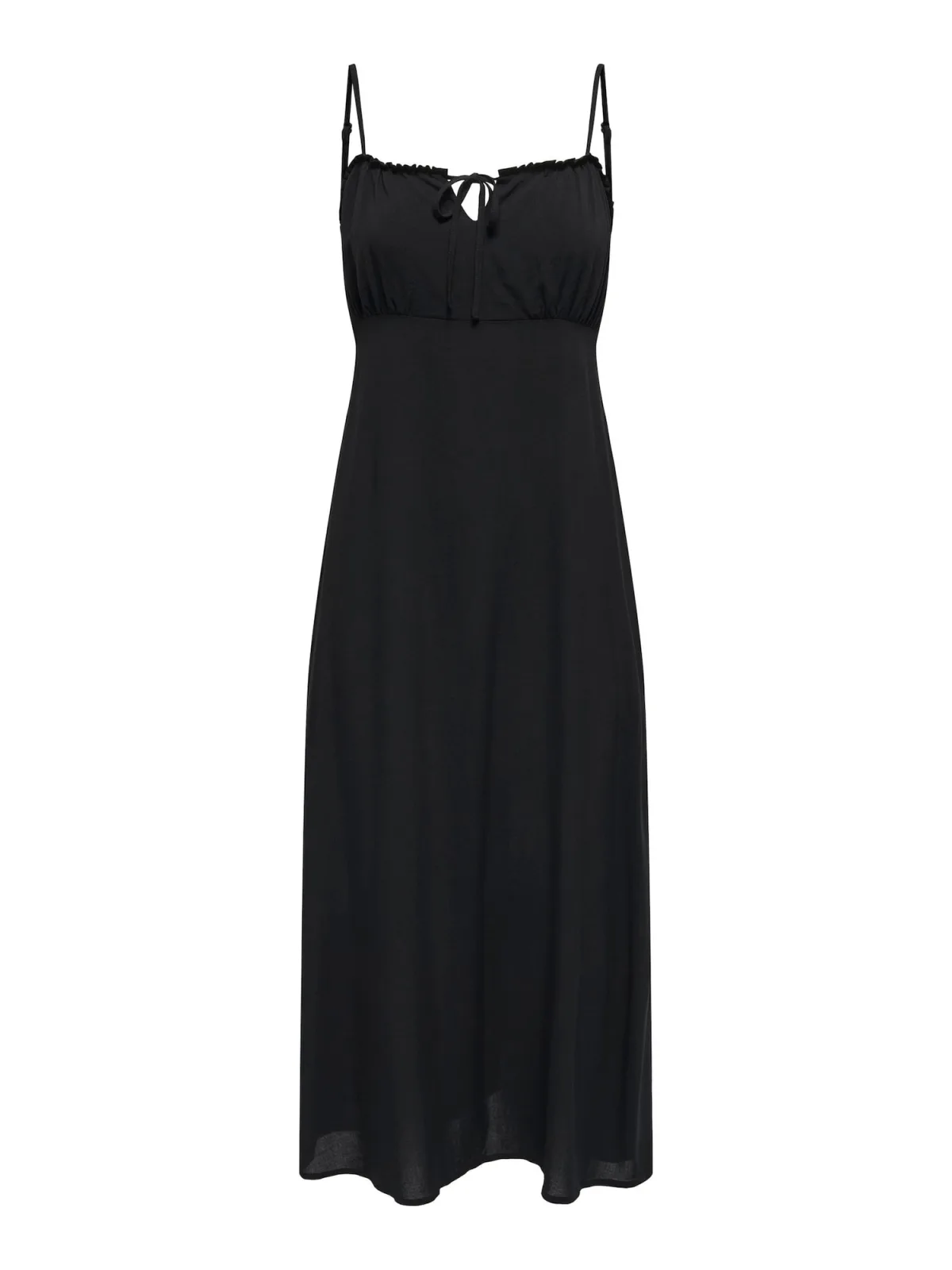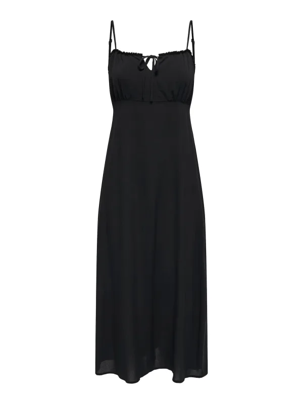 Design: Gevoerde zoom/rand, Rug rits; Type sluiting: Ritssluiting; Materiaal: Viscose; Motief: Effen; Soort bandjes: Spaghettibandjes; Details: Cut-outs, Ruches, Gedrapeerd; Extra's: Verstelbare bandjes, Voelt zacht aan; Lengte: 3/4 lengte; Snit: Getailleerd; Pasvorm: Normale pasvorm; Armlengte: Mouwloos