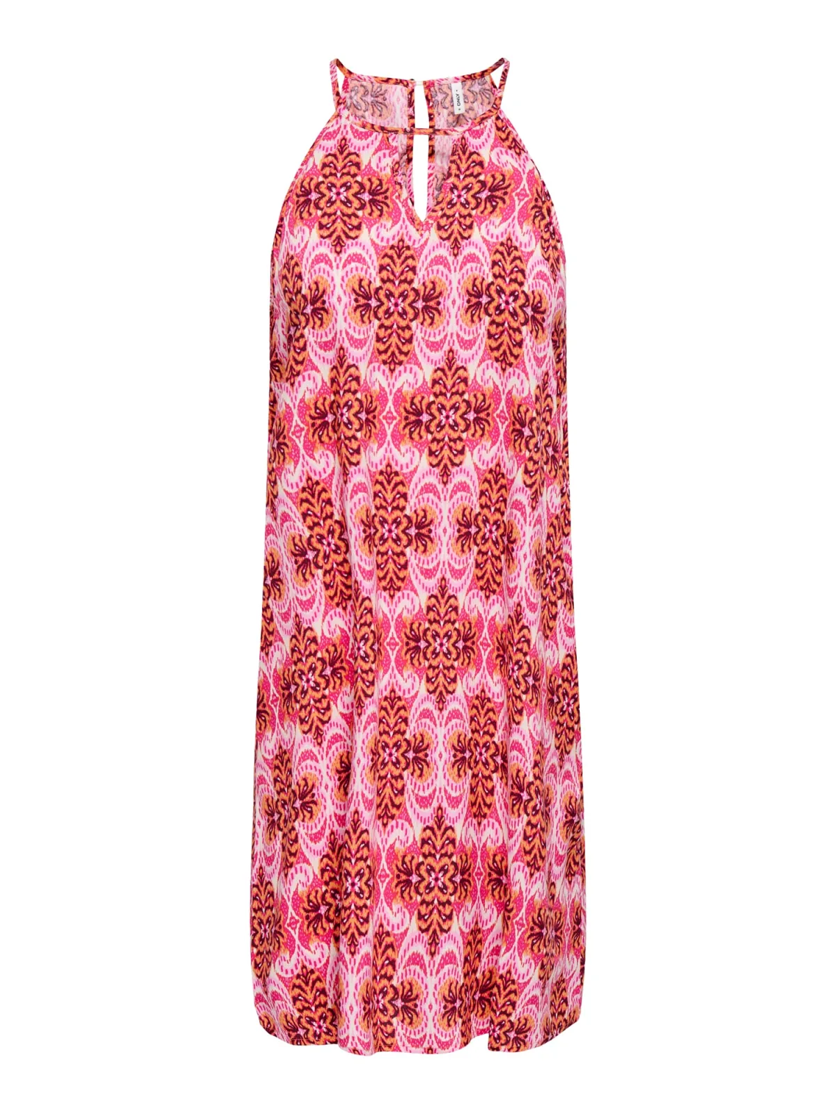 Specificaties: ONLY Jurk ‘ONLNOVA’ oranje / fuchsia / wit