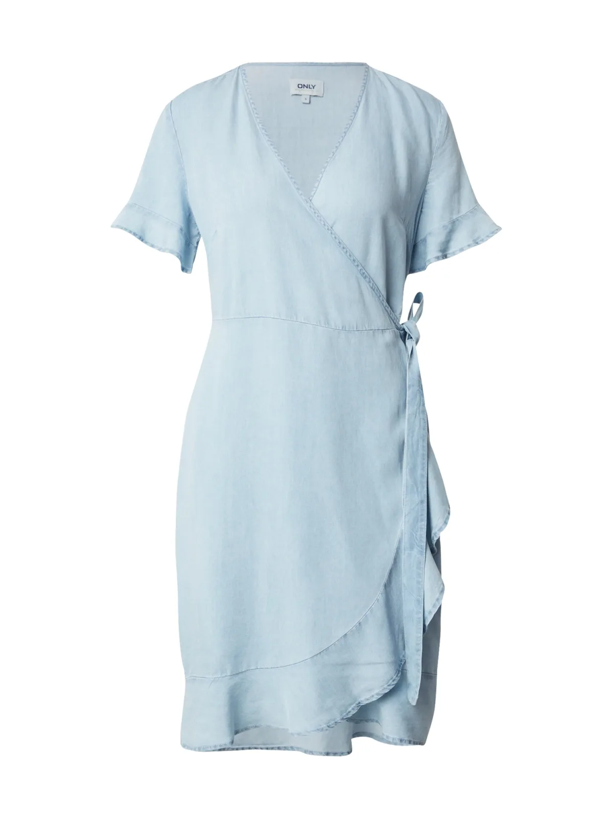 Design: Asymmetrische zoom, Diepe snit/decolleté, Om te knopen/binden; Materiaal: Denim; Halstype: V-hals; Motief: Effen; Details: Volant, Wikkel design; Extra's: Op staal naden, Voelt zacht aan; Lengte: Kort/mini; Snit: Getailleerd; Pasvorm: Normale pasvorm; Armlengte: Kwartmouw