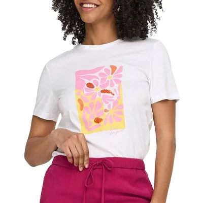 Specificaties: * Pasvorm: regular fit; ronde hals * Kleur: wit – roze - geel * Materiaal: 100% biologisch katoen